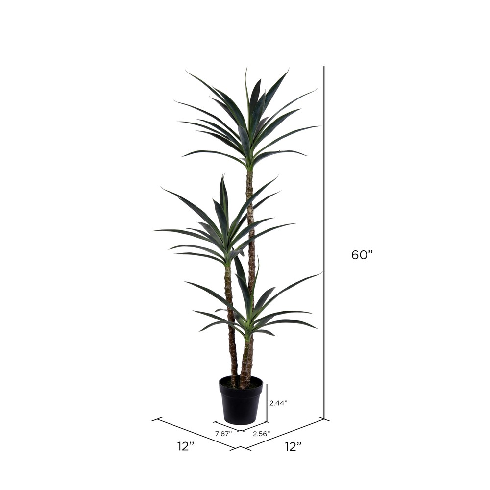 Earthflora 60" Artificial Green Yucca Tree in Black Planters Pot.