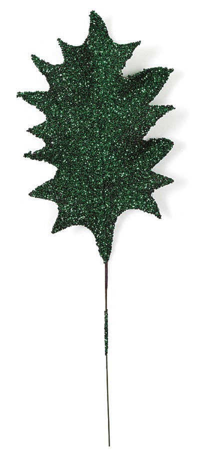 A-172310 - Red A-172313 - Green A-172316 - Teal Artificial 22" Beaded/Glittered Holly Leaf Spray 12" Leaf Length 8" Approx. Width