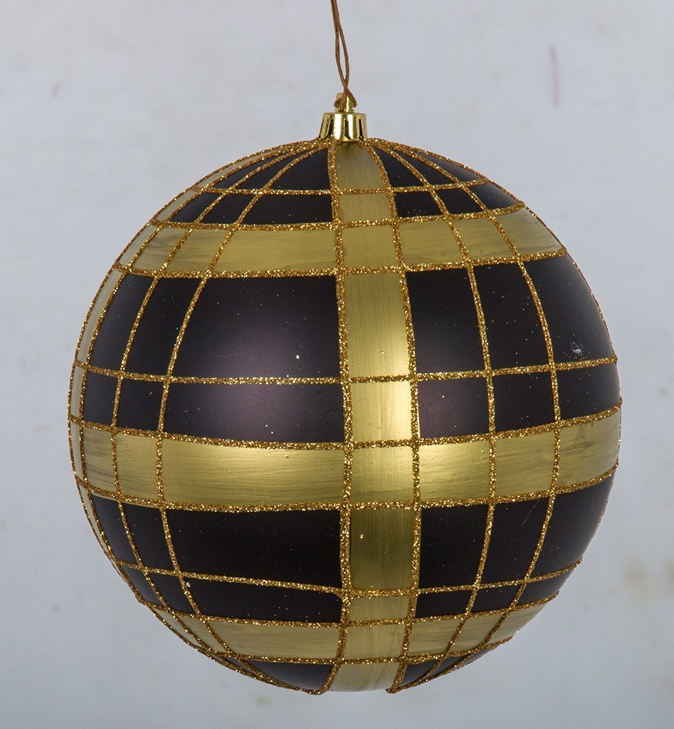 Earthflora's Matte Black And Gold Plaid Ball With Glitter - 4 Inch Or 6 Inch Sizes Pattern